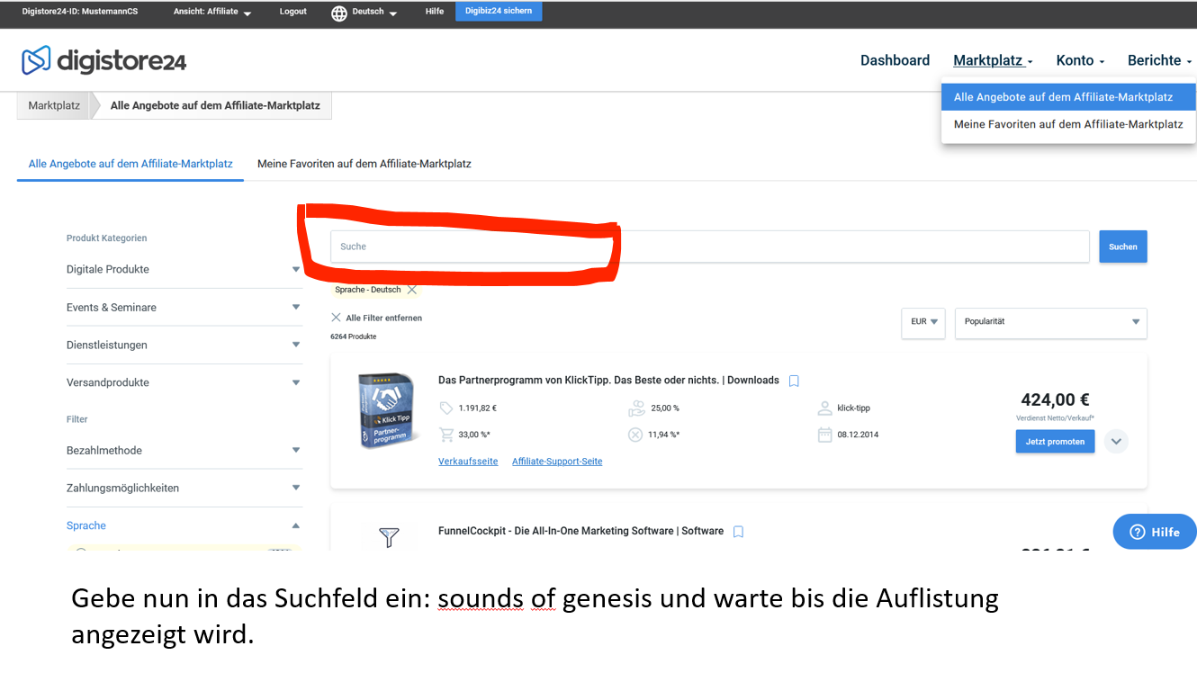 Wie finde ich die Produkte auf dem Marktplatz bei Digistore24