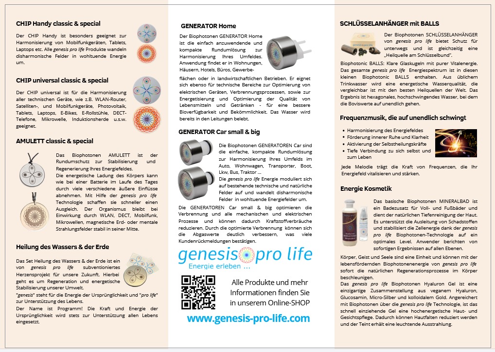 Bestellen Sie hier den genesis pro life "Produkt-Übersicht" Flyer (10er Pack).