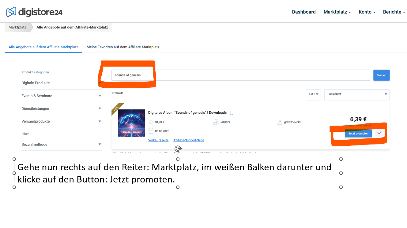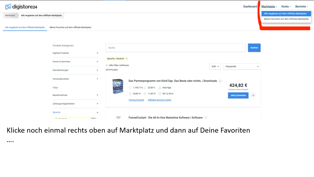 Wie finde ich die Produkte auf dem Marktplatz bei Digistore24