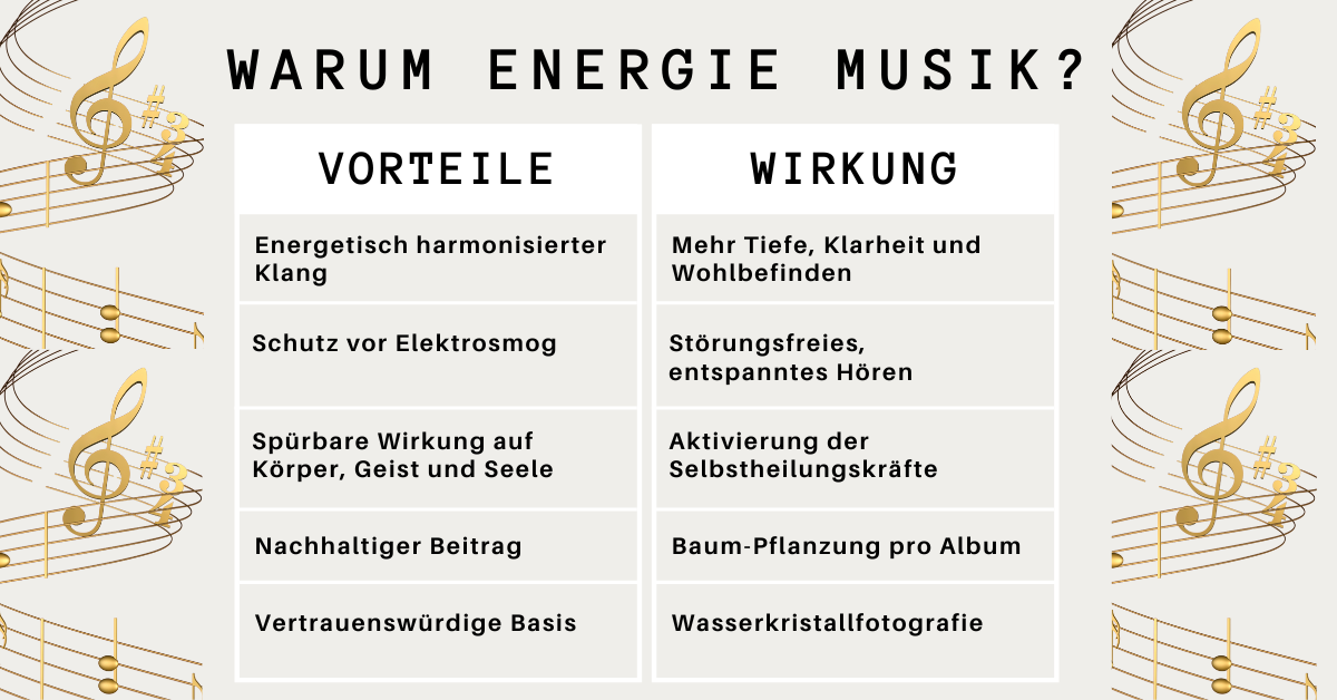 Jede Melodie trägt die Kraft von Frequenzen, die Ihr Energiefeld vitalisieren und stärken.